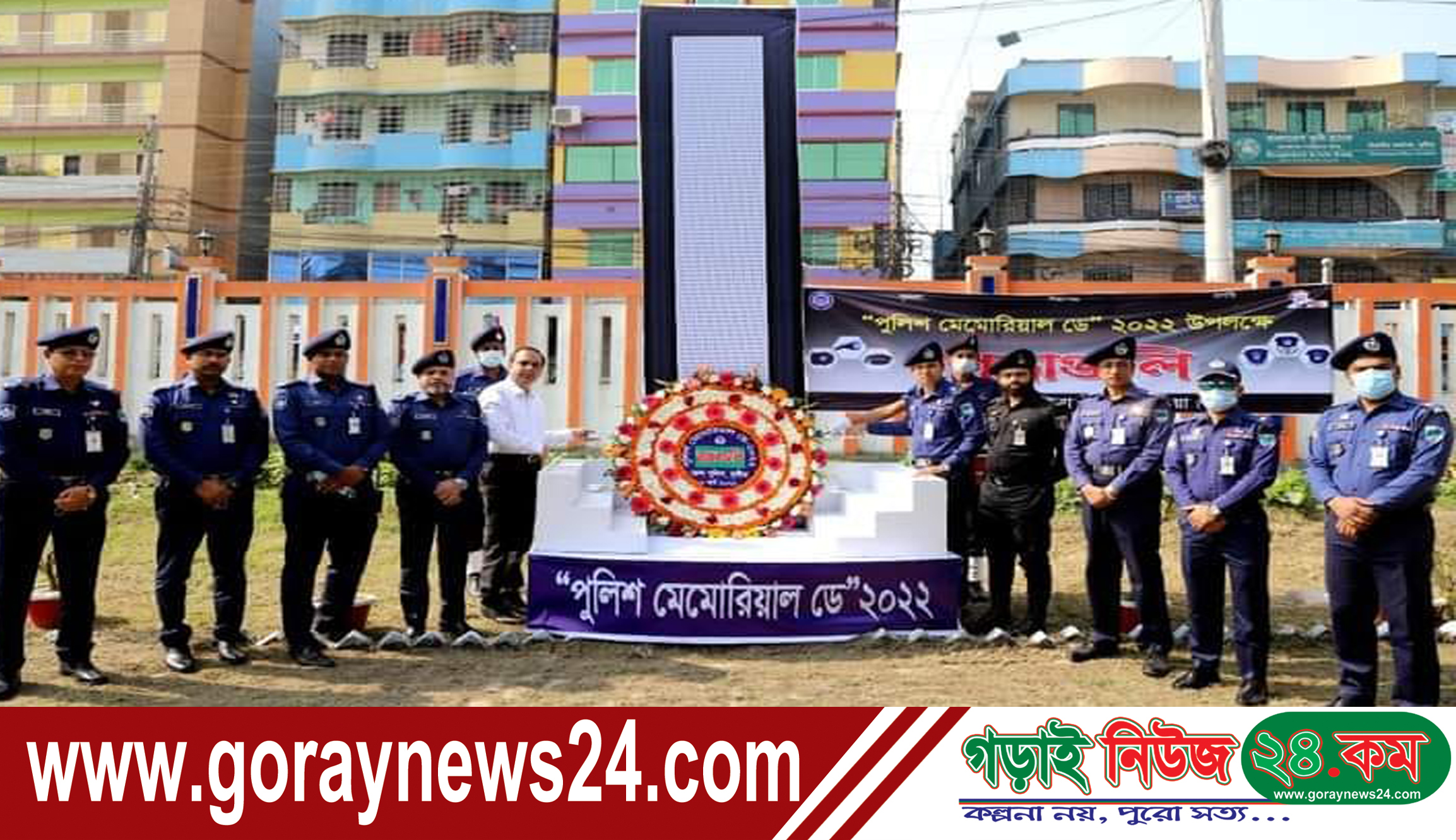 কুষ্টিয়া অফিস, গড়াইনিউজ২৪.কম:: মঙ্গলবার (১ মার্চ ২০২২) সকাল ১০টায় কুষ্টিয়া জেলা পুলিশ লাইন্সে জেলা পুলিশের আয়োজনে কর্তব্যরত অবস্থায় নিহত পুলিশ সদস্যদের স্মরণে পালিত হলো “পুলিশ মেমোরিয়াল ডে” ২০২২। তাঁদের অবদানকে স্মরণীয় করে রাখার জন্য তাদের স্মৃতিস্তম্ভে পুষ্পস্তবক অর্পনের মাধ্যমে শ্রদ্ধা নিবেদন করেন পুলিশ সুপার কুষ্টিয়া মোঃ খাইরুল আলমের নেতৃত্বে জেলা পুলিশ কুষ্টিয়া। এ সময় কর্তব্যরত অবস্থায় মৃত্যুবরণকারী সকল পুলিশ সদস্যদের পরিবারবর্গ স্মৃতিস্তম্ভে পুষ্পস্তবক অর্পণ করে শ্রদ্ধা নিবেদন করেন। এছাড়াও কুষ্টিয়া জেলায় কর্তব্যরত সকল পুলিশ ইউনিট প্রধানগণ এবং রেপিড একশন ব্যাটালিয়ন এর কমান্ডার পর্যায়ক্রমে পুষ্পস্তবক অর্পণ করে গভীর শ্রদ্ধা নিবেদন করেন। এ সময় কর্তব্যরত অবস্থায় মৃত্যুবরণকারী পুলিশ সদস্যদের পরিবারবর্গ আবেগ আপ্লুত হয়ে পড়েন।