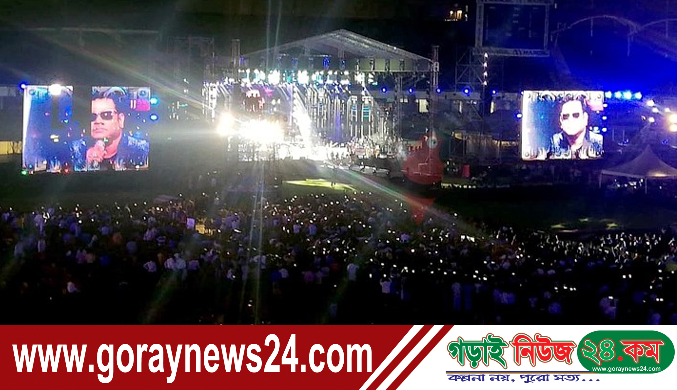 ঢাকা অফিস, গড়াইনিউজ২৪.কম:: বঙ্গবন্ধুর জন্মশতবার্ষিকী উপলক্ষে মিরপুর শেরে বাংলা জাতীয় ক্রিকেট স্টেডিয়ামে চলছে ‘ক্রিকেট সেলিব্রেটস মুজিব হান্ড্রেড’ কনসার্ট। মঙ্গলবার (২৯ মার্চ) বিকেল ৫টা ২০ মিনিটে রুমানা মালিক মুনমুনের সঞ্চালনায় এ কনসার্ট শুরু হয়। কনসার্টে পারফর্ম করতে মঞ্চে উঠেছেন উপমহাদেশের প্রখ্যাত সুরকার ও অস্কারজয়ী সংগীতশিল্পী এ আর রহমান। রাত সাড়ে ৯টায় তিনি মঞ্চে গান পরিবেশন শুরু করেন। এর আগে রাত সাড়ে ৮টায় কনসার্টে উপস্থিত হন প্রধানমন্ত্রী শেখ হাসিনা। প্রধানমন্ত্রীর আসার পরপরই শুরু হয় জাতীয় সংগীত পরিবেশনা। বিসিবির প্রেসিডেন্ট বক্সে বসেছেন তিনি। বিকেলে কনসার্ট শুরুর পর প্রথম পারফর্ম করে ব্যান্ডদল মাইলস। এরপর আসেন মমতাজ বেগম। সন্ধ্যা সাড়ে ৬টার দিকে বৃষ্টি বাধায় থেমে যায় কনসার্ট। বৃষ্টির পর আবার কনসার্টের মঞ্চে ওঠেন মমতাজ। জানা গেছে, রাত ১২টা পর্যন্ত প্রায় ২০০ সহশিল্পী নিয়ে পারফর্ম করবেন এ আর রহমান। পুরো দল মিলে ৩৫টির মতো গান পরিবেশনের কথা রয়েছে তার। গাইবেন বাংলা গানও। সন্ধ্যা সোয়া ৬টা পর বৃষ্টি শুরু হলে মাঠে থাকা দর্শকরা চরম ভোগান্তিতে পড়েন। বিভিন্নভাবে তারা বৃষ্টি থেকে বাঁচার চেষ্টা করেন। কেউ কেউ চেয়ার উল্টো করে বৃষ্টি থেকে বাঁচার চেষ্টা করেন। কেউবা ব্যাগ, কেউবা ককশিটের বক্স মাথায় দিয়ে বৃষ্টি থেকে নিজেদের রক্ষা করেন। বৃষ্টি থেমে যাওয়ার পর গোল্ড আর প্লাটিনামের দর্শকরা মাঠে ঢুকতে শুরু করেন। তবে ফোমের চেয়ার হওয়ায় কিছুটা সমস্যায় পড়তে হয় তাদের। গোল্ড ক্যাটাগরির চেয়ার বৃষ্টিতে ভিজে গেছে। মাঠের বিভিন্ন প্রান্তে পানি জমে যায়।