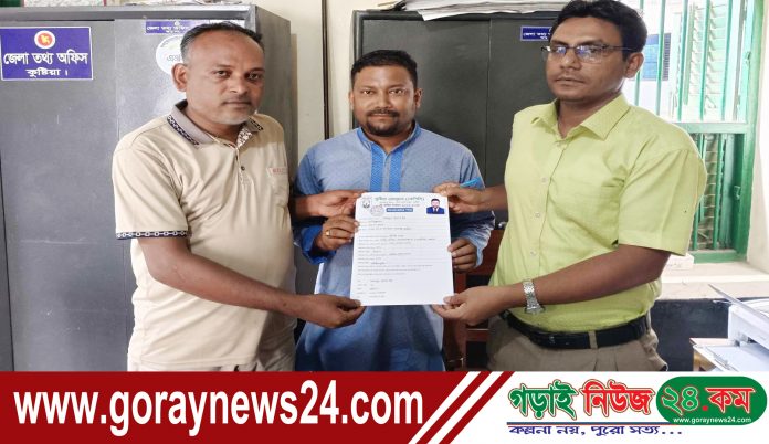 কুষ্টিয়া অফিস, গড়াইনিউজ২৪.কম:: আগামী ২৩ সেপ্টেম্বর কুষ্টিয়া প্রেসক্লাব কেপিসি’র নির্বাচনকে সামনে রেখে আজ (৭ সেপ্টেম্বর-২৩) বৃহস্পতিবার সকালে কুষ্টিয়া প্রেসক্লাব কেপিসি’র নির্বাহী সদস্য পদে কুষ্টিয়া জেলা তথ্য অফিসে কুষ্টিয়া প্রেসক্লাব-কেপিসি’র নির্বাচন (২০২৩-২০২৫) থেকে মনোনয়নপত্র জমা করলেন গড়াইনিউজ পত্রিকার সম্পাদক আতিকুর জামান (ছন্দ)। এ সময় আতিকুর জামান (ছন্দ) এর সাথে উপস্থিত ছিলেন দৈনিক লালন কন্ঠ পত্রিকার প্রকাশক ও সম্পাদক গুরু আনারুল ইসলাম স্বাধীন। আতিকুর জামান ছন্দ বলেন, দীর্ঘদিন ধরে কুষ্টিয়া প্রেসক্লাব কেপিসি’র সঙ্গে কাজ করে আসছি। ক্লাবের সকল সদস্য প্রতি ভালোবাসা ও সহযোগিতা কামনা করছি। তিনি আরো বলেন, নির্বাচনকে কেন্দ্র করে কুষ্টিয়া প্রেসক্লাব কেপিসি’তে এখন অনেকটাই উৎসবমুখর। কুষ্টিয়ার সাংবাদিকদের সবচেয়ে বড় এ সংগঠনটির কার্যালয়ে এখন সাংবাদিকদের আনাগোনা আগের তুলনায় বেড়েছে। শেষ সময়ে ভোটারদের সঙ্গে আলাপচারিতায় সময় দিচ্ছেন প্রার্থীরা। বেশিরভাগ প্রার্থী সকাল থেকে রাত অবধি সময় কাটাচ্ছেন প্রেসক্লাব প্রাঙ্গণে। সাধারণ সদস্যদের মধ্যেও দেখা যাচ্ছে নির্বাচনের আমেজ। নির্বাচনকে সামনে রেখে ক্লাবে বাড়তি সময় দেয়ার প্রবণতা দেখা গেছে সকলের মধ্যে। এ সময় প্রধান নির্বাচন রিটার্নিং অফিসার আমিনুল ইসলাম জানান, দিন ব্যাপি শান্তিপূর্ণভাবে মনোনয়ন ফরম জমা নেওয়া হয়েছে। তফসিল অনুযায়ী আগামী ২৩ সেপ্টেম্বর-২৩ শনিবার সকাল ১০ টা থেকে বিকাল ৪ টা পর্যন্ত (বিরতিহীনভাবে) ভোট গ্রহণ ও নির্বাচনের ফলাফল প্রকাশ করা হবে। কুষ্টিয়া প্রেসক্লাব কেপিসি’র ভবনের কাঙাল হরিনাথ মিলনায়তনে।