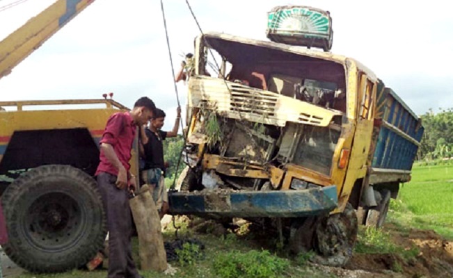 প্রত্যক্ষদর্শী ও আহতরা জানান, ইলিশ মাছের ব্যবসার সুবাদে তারা ২১ দিন আগে ঠাকুরগাঁও মাছের মোকামে আসেন। সেখান থেকে বিভিন্ন এলাকার মাছ ব্যবসায়ীদের কাছে সরবরাহকৃত মাছের বাকি বকেয়া নিয়ে বাড়ি ফেরার জন্য বৃহস্পতিবার রাতে সাড়ে ১১টায় পঞ্চগড় থেকে ঢাকাগামী পাথর বোঝাই ট্রাকে করে রওনা হন। ভোরে মতিহারা এলাকায় আসার পরপরই চালক ট্রাকের নিয়ন্ত্রণ হারিয়ে ফেললে ট্রাকটি সড়কের পাশের খাদে উল্টে পড়ে। এতে ট্রাক ও পাথরের নিচে চাপা পড়ে দুইজন ঘটনাস্থলেই মারা যান এবং অন্তত ১৫ জন গুরুতর আহত হন। স্থানীয়রা আহতদের উদ্ধার করে স্থানীয় স্বাস্থ্য কমপ্লেক্সে নিয়ে যায়। থানার অফিসার ইনচার্জ (ওসি) ইসমাইল হোসেন দুর্ঘটনার বিষয়টি নিশ্চিত করেছে।