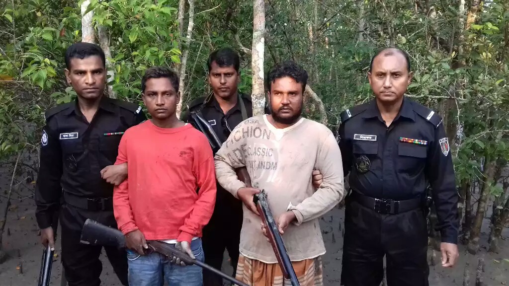 এস.এম. সাইফুল ইসলাম কবির, সুন্দরবন থেকে ফিরে, গড়াইনিউজ২৪.কম:: সুন্দরবনের সাতক্ষীরা রেঞ্জের ছোট কলাগাছিয়া সংলগ্ন পশুরতলা খালে অভিযান চালিয়ে বনদস্যু জোনাব বাহিনীর দুই সদস্যকে আটক করেছে র্যাব-৮। এসময় ঘটনাস্থল থেকে ৫টি আগ্নেয়াস্ত্র ও ১৫ রাউন্ড গুলি উদ্ধার করা হয়। আজ সোমবার সকাল ৭টার দিকে তাদের আটক করা হয়। র্যাব বরিশাল-৮ এর উপ-অধিনায়ক মেজর আদনান কবির জানান আটককৃতরা হলেন- শ্যামনগর উপজেলার কালি গ্রামের শামসুর মোড়লের ছেলে আব্দুর রহিম মোড়ল ও খুলনা জেলার পাইকগাছা থানার রামনগর গ্রামের মোমিন মোড়লের ছেলে অজিহার মোড়ল। পরে অস্ত্র ও গুলিসহ তাদেরকে শ্যামনগর থানায় হস্তান্তর করা হয়েছে।এ সময় দস্যুদের ব্যবহৃত ১৫টি দেশি-বিদেশি আগ্নেয়াস্ত্র এবং ৯৮ রাউন্ড গুলি পাওয়া যায়। র্যাব-৮ এর সহকারি পুলিশ সুপার হাফিজুল ইসলাম জানান, সকালে র্যাব সদস্যরা গোপন সংবাদের ভিত্তিতে জোনাব বাহিনীকে ধরতে পশুরখাল এলাকায় যায়। র্যাব সদস্যরা ওই এলাকায় পৌঁছালে বনদস্যুরা র্যাবের ওপর গুলি চালাতে থাকে। এসময় র্যাবও পল্টা গুলি শুরু করে। উভয় পক্ষের অর্ধশতাধিক রাউন্ড গুলিবিনিমরে পর জোনাব বাহিনী পিছু হটে। এক পর্যায়ে র্যাবসদস্যরা জোনাব বাহিনীর দু’সদস্যকে আটক করা হয়। তিনি জানান, এসময় তাদের কাছ থেকে ২টি একনলা বন্দুক, ১টি দো-নলা বন্দুক, ১টি ওয়ান শুটার গান, ১টি পিস্তল ও ১৫ রাউন্ড গুলি জব্দ করা হয়। পরেঅস্ত্রসহ দুই বনদস্যুকে শ্যামনগর থানায় হস্তান্তর করা হয়। আটককৃতরা হলেন সাতক্ষীরার শ্যামনগর উপজেলার কালিঞ্চি গ্রামের রহিম মোড়ল ও খুলনার পাইকগাছার অজিহার মোড়ল। সোমবার দুপুর ১২টার দিকে তাদের শ্যামনগর থানায় হস্তান্তর করা হয় শ্যামনগর থানার অফিসার ইনচার্জ (ওসি) মোস্তাফিজুর রহমান বিষয়টি নিশ্চিত করেছেন।