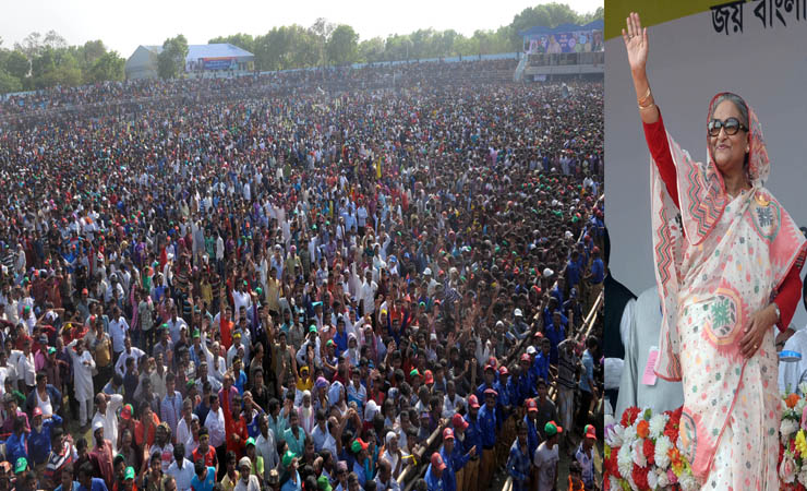 গড়াইনিউজ২৪.কম:: মাগুরা উপনির্বাচনে ভোট চুরি করে খালেদা জিয়া ক্ষমতাচ্যুত হয়েছিলেন বলে মন্তব্য করেছেন আওয়ামী লীগের সভাপতি ও প্রধানমন্ত্রী শেখ হাসিনা। বিএনপিকে ‘ভোটচোরের দল’ দাবি করে তাদের আবার ক্ষমতায় না বসাতে দেশবাসীর প্রতি আহ্বান জানিয়েছেন তিনি। মঙ্গলবার বিকালে মাগুরায় মুক্তিযোদ্ধা আসাদুজ্জামান স্টেডিয়ামে আওয়ামী লীগ আয়োজিত জনসভায় প্রধান অতিথির ভাষণে শেখ হাসিনা এসব কথা বলেন। এর আগে দুপুরে প্রায় নয় বছর পর মাগুরায় আসেন প্রধানমন্ত্রী। তিনি ১৯টি উন্নয়ন প্রকল্প উদ্বোধন ও নয়টি প্রকল্প কাজের ভিত্তিপ্রস্তর স্থাপন করেন। ১৯৯৪ সালের ২০ মার্চ মাগুরা-২ আসনের উপ-নির্বাচনে নজিরবিহীন ভোট কারচুপির অভিযোগ তুলে তৎকালীন বিরোধী দল আওয়ামী লীগ। পরদিন ২১ মার্চ মাগুরা থেকে গণতন্ত্র পুনরুদ্ধার এবং দেশের মানুষের ভোট ও ভাতের অধিকার প্রতিষ্ঠার ঘোষণা দেন শেখ হাসিনা। ঐতিহাসিক সেই ২১ মার্চ আবার শেখ হাসিনা মাগুরায় আসেন এবং জনসভায় ভাষণ দেন। আওয়ামী লীগ আয়োজিত জনসভায় বিএনপির সমালোচনা করে শেখ হাসিনা বলেন, ‘তারা ২০০১ সালে গ্যাস বিক্রির মুচলেকা দিয়ে ভারতীয় গোয়েন্দা সংস্থা ‘র’ আর আমেরিকার সহযোগিতায় ক্ষমতায় আসে।’ তিনি বলেন, ‘বিএনপি ক্ষমতায় এসেই সারাদেশে শুরু করে অত্যাচার নির্যাতন। তাদের সেই নির্যাতনের কথা মাগুরাবাসী এখনো ভুলেনি।’ বিএনপি জোটের হরতাল-অবরোধে নৃশংসতার বর্ণনা দিয়ে প্রধানমন্ত্রী বলেন, ‘কিছু দিন আগেও তারা জ্বালাও-পোড়াও করেছে, পুড়িয়ে মানুষ মেরেছে। তাদের কাজই হচ্ছে শুধু নির্যাতন। তারা যখনই ক্ষমতায় এসেছে দেশের মানুষের ওপর নির্যাতন চালিয়েছে। আর আওয়ামী লীগের লক্ষ্য মানুষের সেবা করা, দেশের মানুষের উন্নয়ন করা।’ আওয়ামী লীগ সভাপতি বলেন, ‘বিএনপি ক্ষমতায় এসে মাগুরায় একটি ত্রাসের রাজত্ব কায়েম করেছিল। আওয়ামী লীগের নেতাকর্মীদের হালের গরু নিয়ে তারা জবাই করে খেয়েছে। খেতের ফসল নষ্ট করেছে, পুকুরের মাছ তুলে নিয়েছে, বাড়িঘরে আগুন দিয়েছে।’ এ সময় তিনি বিএনপির আমলে খুন হওয়া মাগুরার নেতাদের তালিকা পড়ে শোনান। শেখ হাসিনা অভিযোগ করেন, ‘বিএনপির হাতে যেমন দেশের মানুষ নিরাপদ নয় তেমনি ধর্মও নিরাপদ নয়। তারা মানুষকে যেমন পুড়ে মেরেছে তেমনি বায়তুল মোকাররমে কোরআন শরিফ পুড়িয়েছে।’ শেখ হাসিনা পরপর দুইবার ক্ষমতায় এসে কী কী উন্নয়ন করেছেন এর বিবরণ দেন। আজ মাগুরায় যেসব উন্নয়নকাজের উদ্বোধন ও ভিত্তিপ্রস্তর স্থাপন করেছেন এর তালিকাও জনসভায় পাঠ করে শোনান। এসব উন্নয়নকে তিনি ‘মাগুরাবাসীর জন্য উপহার’ হিসেবে আখ্যায়িত করেন। মাগুরাবাসীর দীর্ঘদিনের দাবি রেললাইনের। সে দাবি পূরণেরও আশ্বাস দেন প্রধানমন্ত্রী। জনসভার শেষ 