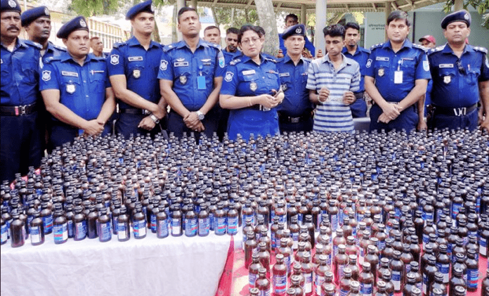 আহম্মেদ নাসির, পাংশা প্রতিনিধি, গড়াইনিউজ২৪.কম:: গত শনিবার রাতে রাজবাড়ীর পাংশা থানা পুলিশের অভিজানে রাজবাড়ী-কুষ্টিয়া হাইওয়ে সড়কে প্রেটল ডিউটি কালে ১ হাজার ১১১পিচ ফেন্সিডিলসহ ট্রাক চালক হুমায়ুন কবীর তুহিন (২৫) কে গ্রেফতার করতে সক্ষম হয়। গ্রেফতারকৃত হুমায়ুন কবীর তুহিন যশোর জেলার চৌগাছা উপজেলার মুক্তাদাহ গ্রামের জয়নাল আবেদীনের ছেলে এবং আটককৃত ওই ফেন্সিডিলের আনুমানিক মূল্য ১১ লক্ষ্যাধীক টাকা। পাংশা থানা অফিসার ইনচার্জ আহসান উল্লাহ জানান ওই দিন রাতে যশোর হতে ছেড়ে আসা ঢাকা গামী ট্রাক (যার রেজিষ্টেশন নং-ঢাকা মেট্রো-১৪-৬৯১৭) টি রাজবাড়ী-কুষ্টিয়া হাইওয়ে সড়ক দিয়ে আসছে। এমন গোপন সংবাদের ভিতিতে তিনি এবং এস, আই লিয়াকত হোসেনসহ সঙ্গীয় ফোর্স নিয়ে ট্রাকটি তল্লাসী করে ট্রাকের মধ্যে থাকা ১ জাহার ১১১ পিচ ফেন্সিডিল দেখতে পেয়ে চালককে গ্রেফতার করে ট্রাকসহ থানায় নিয়ে আসে। পাংশা থানা সুত্রে জানা যায় পাংশা থানা পুলিশ এত বড় ফেন্সিডিলের চালান পূর্বে আর কখনই আটক করতে সক্ষম হয়নি। এব্যপারে মাদক দ্রব্য আইনে পাংশা থানায় একটি মামলা হয়েছে।