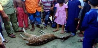 হরিণ মারা গেল কুকুরের তাড়া খেয়ে