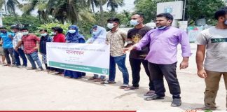 স্বাস্থ্যবিধি মেনে শিক্ষা প্রতিষ্ঠান খোলার দাবিতে মানববন্ধনে খুবি শিক্ষার্থীরা