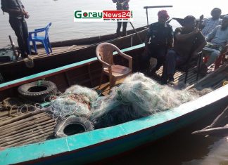 শরীয়তপুর গোসাইরহাট উপজেলায় ৬০কেজি জালসহ ৩ জেলে নৌকা আটক