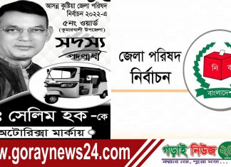 কুষ্টিয়া অফিস, গড়াইনিউজ২৪.কম:: আসন্ন কুষ্টিয়া জেলা পরিষদ নির্বাচনে জেলার সম্ভাব্য প্রার্থীদের ভোট প্রার্থনায় দোড়ঝাপ শুরু হয়েছে। আগামী ১৭ই অক্টোবর ২০২২ইং তারিখে অনুষ্ঠিত হবে জেলা পরিষদ নির্বাচন। আর এই জেলা পরিষদ নির্বাচনে ৫নং ওয়ার্ড কুমারখালী...