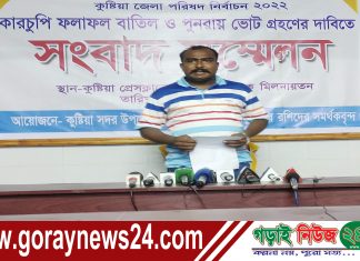 কুষ্টিয়া জেলা পরিষদ নির্বাচনের ফলাফল বাতিল ও পুনরায় ভোট গ্রহণের দাবিতে সংবাদ সম্মেলন
