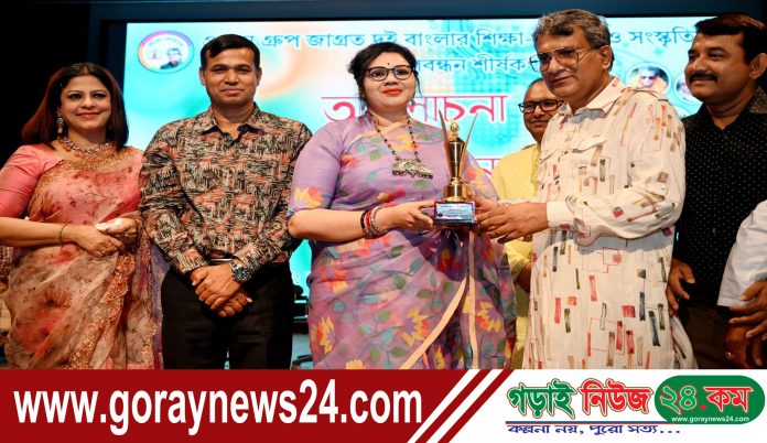কুষ্টিয়া অফিস, গড়াইনিউজ২৪.কম:: শুক্রবার (২ জুন ২০২৩) সন্ধ্যা সাড়ে ৭ টায় জাগ্রত সাহিত্য পরিষদের আয়োজনে কুষ্টিয়া জেলা শিল্পকলা একাডেমি মিলনায়তনে জাগ্রত সাহিত্য ও গুণীজন সম্মাননা ২০২৩ প্রদান অনুষ্ঠান অনুষ্ঠিত হয়। পুলিশ সুপার কুষ্টিয়া মোঃ খাইরুল আলম প্রধান অতিথি এবং পুলিশ নারী কল্যাণ সমিতি (পুনক) কুষ্টিয়ার সভানেত্রী জনাব দিলরুবা আলম বিশেষ অতিথি হিসেবে উপস্থিত থেকে সংশ্লিষ্ট বিষয় সংক্রান্তে মূল্যবান বক্তব্য রাখেন। এ বছর জাগ্রত “গুণীজন সম্মাননা ২০২৩” বিভিন্ন ক্যাটাগরিতে সম্মাননা স্মারক প্রদান করা হয়। মূলত পশ্চিমবঙ্গসহ বাংলাদেশের বিভিন্ন জেলার তৃণমূল পর্যায়ে নানাবিধ ক্ষেত্রে অবদান রাখার কারণে জাগ্রত গুণীজন সম্মাননা প্রদান করলো জাগ্রত সাহিত্য পরিষদ। পুলিশ নারী কল্যাণ সমিতি (পুনাক) কুষ্টিয়ার সভানেত্রী জনাব দিলরুবা আলমের নের্তৃত্বে কুষ্টিয়া পুনাক নারীর ক্ষমতায়নে কাজ করার পাশাপাশি বিভিন্ন সময়ে হতদরিদ্রদের মাঝে সাধ্যমতো খাদ্য সামগ্রী, কাপড়, ঔষধ, নগদ অর্থ, হুইল চেয়ার, সেলাই মেশিন, কম্বল বিতরণসহ নানাবিধ মানবিক কার্যক্রমে অংশ গ্রহণ করে পুলিশ নারী কল্যাণ সমিতি (পুনাক) কুষ্টিয়া জেলায় অনেক সুনাম অর্জন করে। মানবতায় বিশেষ অবদান রাখার কারনে পুলিশ নারী কল্যাণ সমিতি (পুনাক) কুষ্টিয়াকে জাগ্রত গুণীজন সম্মাননা প্রদান করে জাগ্রত সাহিত্য পরিষদ। পুলিশ নারী কল্যাণ সমিতি (পুনাক) সভানেত্রীর হাতে “জাগ্রত গুণীজন সম্মাননা ২০২৩” তুলে দেন শিহাব রিফাত আলম, চেয়ারম্যান, জাগ্রত সাহিত্য পরিষদ, কেন্দ্রীয় কমিটি। এ ছাড়াও পশ্চিমবঙ্গ থেকে আগত এবং জাগ্রত গুণীজন সম্মাননা ২০২৩ প্রাপ্ত হলেন যথাক্রমে ড.পুষ্প বৈরাগ্য, সহযোগী অধ্যাপক, ব্যারাকপুর রাষ্ট্রগুরু সুরেন্দ্রনাথ কলেজ, পশ্চিমবঙ্গ, ড. প্রিয়দর্শী মজুমদার সহকারী অধ্যাপক পদার্থবিদ্যা বিভাগ, রাষ্ট্রগুরু সুরেন্দ্রনাথ কলেজ ব্যারাকপুর কলকাতা, ড. মনোজিৎ রায়, অধ্যক্ষ রাষ্ট্রগুরু সুরেন্দ্রনাথ কলেজ ব্যারাকপুর কলকাতা, Payel Manna State Aided College Teacher (SACT), বরুণ চক্রবর্তী কবি ও সাহিত্যিক কলকাতা, তাপসি সিংহ, আবৃতিকার কলকাতা। এ সময় আরো উপস্থিত ছিলেন, ড. আমানুর আমান, বিশিষ্ট লেখক ও গবেষক, কামারুল আরেফীন, চেয়ারম্যান, উপজেলা পরিষদ, মিরপুর, ডা: এএফএম আমিনুল হক রতন, সহসভাপতি জেলা আওয়ামীলীগ ও সভাপতি বিএমএ, কুষ্টিয়া জেলা শাখা, মাসুম রেজা, প্রখ্যাত নাট্যকার, ঔপন্যাসিক, নাট্য নির্দেশক, আমিরুল ইসলাম, সাধারন সম্পাদক, জেলা শিল্পকলা একাডেমী, কুষ্টিয়া, ড. জহুরুল ইসলাম অধ্যাপক ,আইন বিভাগ, ইসলামি বিশ্ববিদ্যালয়, আনিসুজ্জামান ডাবলু, সাধারণ সম্পাদক, কুষ্টিয়া প্রেসক্লাব, রাশেদুল ইসলাম বিপ্লব সভাপতি, কেপিসি কুষ্টিয়া, কুষ্টিয়া জে