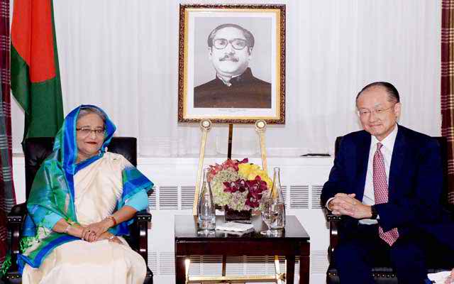 গড়াইনিউজ২৪.কম:: নিউ ইয়র্কে প্রধানমন্ত্রী শেখ হাসিনার সঙ্গে বিশ্বব্যাংকের প্রেসিডেন্ট জিম ইয়ং কিম বৈঠক করেছেন। মঙ্গলবার জাতিসংঘের ৭১তম সাধারণ পরিষদের বৈঠকে যোগ দিতে যাওয়া বাংলাদেশের প্রধানমন্ত্রী শেখ হাসিনার বাসকক্ষে এসে সৌজন্য সাক্ষাৎ করেন বিশ্বব্যাংকের প্রেসিডেন্ট। জাতিসংঘের সাধারণ পরিষদের বৈঠকের পাশাপাশি বিভিন্ন রাষ্ট্র ও আন্তর্জাতিক সংস্থার প্রধানদের সঙ্গে প্রধানমন্ত্রীর দ্বিপক্ষীয় বৈঠকের ধারাবাহিকতায় এ বৈঠক হয়। বৈঠকে বিশ্বব্যাংকের অর্থায়নে বাংলাদেশে চলমান বিভিন্ন উন্নয়ন প্রকল্পের অগ্রগতি নিয়ে সন্তোষ প্রকাশ করেন দাতা সংস্থাটির প্রেসিডেন্ট। একই সঙ্গে আগামীতে শিক্ষা, স্বাস্থ্য, যোগাযোগ ও অবকাঠামো খাতে বাংলাদেশে সহযোগিতা বাড়ানোর আশ্বাস দেন তিনি। বৈঠকে অব্যাহত সহযোগিতার জন্য বিশ্বব্যাংকের প্রেসিডেন্টকে ধন্যবাদ জানান প্রধানমন্ত্রী শেখ হাসিনা। বৈঠককালে পররাষ্ট্রমন্ত্রী এ এইচ মাহমুদ আলী, প্রধানমন্ত্রীর মুখ্য সচিব আবুল কালাম আজাদ, পররাষ্ট্র প্রতিমন্ত্রী শাহরিয়ার আলম ও পররাষ্ট্র সচিব মো. শহীদুল হক উপস্থিত ছিলেন। এর আগে সোমবার বাংলাদেশের প্রধানমন্ত্রী শেখ হাসিনা ও মিয়ানমারের স্টেট কাউন্সিলর অং সান সুচির মধ্যে বৈঠক হয়। এ সময় সংলাপের মাধ্যমে সকল দ্বিপাক্ষিক বিষয় সমাধানের ব্যাপারে সম্মত হয় দুই দেশ।