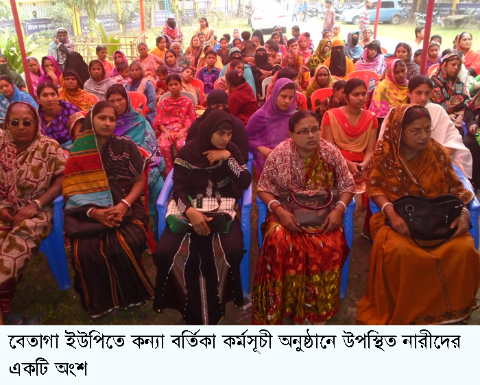 এস.এম. সাইফুল ইসলাম কবির, বাগেরহাট অফিস, গড়াইনিউজ২৪.কম:: বাগেরহাটের ফকিরহাট উপজেলার উন্নয়নের রোল মডেল বেতাগা ইউনিয়ন পরিষদের নিজেস্ব উদ্যোগে নারী ও কন্যা শিশুর প্রতি ইতিবাচক ও সম্মানজনক দৃষ্টিভঙ্গি গড়ে তোলার লক্ষ্যে কন্যা বর্তিকা কর্মসুচি চালু করতে যাচ্ছেন ইউনিয়ন পরিষদের নারী ও শিশু কল্যান সংক্রান্ত স্থায়ী কমিটি। এই কর্মসূচি চালু করা হলে শতাধিক কন্যাশিশু সমাজে প্রতিষ্ঠিত হয়ে রাষ্ট্রের সম্পাদে পরিনত হবে। বেতাগা ইউনিয়ন পরিষদের মত দেশের প্রতিটি ইউনিয়নে যদি এই কন্যা বর্র্তিকা কর্মসুচি চালু করা হয়, তহালে সরকারের ভিশন-২০২১ বাস্তবায়নে আরো একধাপ এগিয়ে যাওয়ার সম্ভাবনা রয়েছে বলে অভিজ্ঞ মহলের ধারনা। জানা গেছে, দেশ জাতি তথা ইউনিয়নের উন্নয়নের লক্ষ্যে বেতাগা ইউনিয়ন পরিষদ ১৪টি স্থায়ী কমিটির মাধ্যমে বেশ কয়েকটি প্রকল্প চালু করেছেন। সেই প্রকল্প গুলি বাস্তবায়িত হয়ে দেশ জাতি তথা সকলের কল্যানে বলিষ্ঠ ভুমিকা পালন করেই চলেছেন। এবার তারা কন্যাশিশুর প্রতি ইতিবাচক ও সম্মানজনক দৃষ্টি ভঙ্গি গড়ে তোলার লক্ষ্যে কন্যা বর্তিকা নামের একটি কর্মসুচি চালু করতে যাচ্ছেন। এটি অচিরেই বাস্তব রুপ ধারন করবে। সুত্র মতে যে সমস্ত পরিবারে পুত্র সন্তান নাই এমন পরিবারে যাদের একটি বা দুটি কন্যা সন্তান রয়েছে সেই পরিবারকে এই কর্মসূচির আওতায় নেওয়া, আঠারো বছর পর্যন্ত কন্যাশিশুকে শিক্ষা সহায়তা প্রদান করা। আঠারো বছর বয়সের পূর্বে কন্যাশিশুর বিয়ে নিরোধ নিশ্চিত করা। সংশ্লিষ্ঠ পরিবারকে ভিজিডি কর্মসূচি বা ফেয়ার প্রাইজ কার্ডের আওতাভুক্ত আনায়ন করা, কন্যাশিশু বা কিশোরীকে বিদ্যালয়ে উপবৃত্তি প্রদানে উদ্যোগ নেওয়া কিংবা পিতা মাতাকে অতিদরিদ্রের জন্য কর্মসংস্থান কর্মসূচিতে অন্তভূক্ত করা, প্রতিটি পরিবারে উন্নত স্যানিটেশন ব্যাবস্থা নিশ্চিত করে পরিছন্ন পরিবেশ গড়ে তোলা, ভালবাসস্থান না থাকলে মাননীয় প্রধানমন্ত্রী ঘোষিত গৃহহীনদের জন্য গৃহনির্মাণ কর্মসূচিতে অন্তরভূক্ত করা, পরিবারকে কমিউনিটি ক্লিনিকের প্রত্যাক্ষ্য সেবা ও পরিচর্যার আওতায় আনা, শুধু তাই নয়, শিক্ষা, স্বাস্থ্য, স্যানিটেশন, সুপেয় পানি ও খাদ্র নিরাপত্তা নিশ্চিত করণের মাধ্যমে উক্ত পরিবারকে দারিদ্রমুক্ত করার সার্বিক উদ্যোগ গ্রহন করেছেন এই ইউনিয়নের ৫ম বারের নির্বাচিত চেয়ারম্যান স্বপন দাশ। এব্যাপারে বাংলাদেশ ইউনিয়ন পরিষদ এ্যাসোসিয়েশনের আহবায়ক, স্থানীয় সরকার বিশেষজ্ঞ ও বেতাগা ইউপির চেয়ারম্যান স্বপন দাশ এর সাথে আলাপ করা হলে তিনি স্থানীয় সংবাদকর্মিদের বলেন, সার্বিক পটভূমি বিবেচনায় কন্যাশিশুদের প্রতি বাঞ্চনা ও অবহেলা দুর করতে সামাজিক সচেতনতা বৃদ্ধির লক্ষ্যে বেতাগা ইউনিয