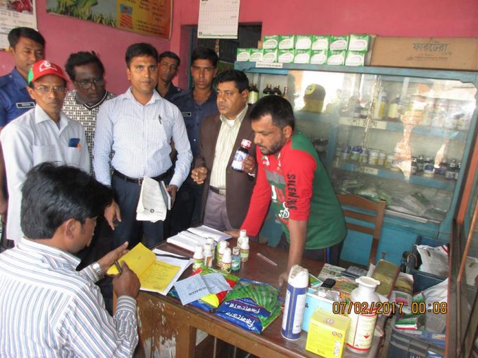 কুষ্টিয়া প্রতিনিধি,গড়াইনিউজ২৪.কম:: কুষ্টিয়ায় বিপুল পরিমান মেয়াদউর্ত্তীণ কীটনাশক ও কেমিকেল পাওয়ায় ৪টি কীটনাশকের দোকানীকে ৮৫ হাজার টাকা জরিমানা আদায় করেছে জাতীয় ভোক্তা অধিকার সংরক্ষণ অধিদপ্তর। সোমবার সকালে সদর উপজেলার বিত্তিপাড়া ও ভাদালিয়া বাজারে এই অভিযান চালানো হয়। ভোক্তা অধিকার সংরক্ষণ অধিদপ্তরের সহকারী পরিচালক মোঃ সেলিমুজ্জামানের নেতৃত্বে এসময় অভিযান চালিয়ে বিত্তিপাড়া বাজারের মহাসীন ট্রেডার্সকে ১৫ হাজার টাকা, নাইম ট্রেডার্সকে ১০ হাজার টাকা, শামীম ট্রেডার্স ১৫ হাজার টাকা ও ভাদালিয়া বাজারের ইমরান ট্রেডার্সকে ৪৫ হাজার টাকা জরিমানা করা হয়। ভোক্তা অধিকার সংরক্ষণ অধিদপ্তরের সহকারী পরিচালক মোঃ সেলিমুজ্জামান জানান, ‘জেলা প্রশাসকের নির্দেশনার প্রেক্ষিতে সদর উপজেলার বিত্তিপাড়া ও ভাদালিয়া বাজারে অভিযান চালানো হয়। এসময় দোকানে মেয়াদউত্তীর্ণ কীটনাশক ও কেমিকেল পাওয়ায় ৪টি প্রতিষ্ঠানকে মোট ৮৫ হাজার টাকা জরিামানা আরোপ ও আদায় করা হয়েছে। এদের দোকান থেকে বিপুল পরিমান কৃষিকাজে ব্যবহৃত মেয়াদর্ত্তীন কীটনাশক ও কেমিকেল উদ্ধার করা হয়। এসকল কীটনাশক ও কেমিকেল ব্যবহারের কারণে কৃষকরা ক্ষতিগ্রস্থ হচ্ছিলেন’। বাজার অভিযানে কৃষি সম্প্রাসারণ অধিদপ্তরের অতিরিক্ত উপ পরিচালক বিভাস চন্দ্র সাহা, সিভিল সার্জনের প্রতিনিধি, মৎস্য কর্মকর্তার প্রতিনিধি উপস্থিত ছিলেন।