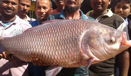 এস.এম. সাইফুল ইসলাম কবির, বাগেরহাট অফিস, গড়াইনিউজ২৪.কম:: বাগেরহাটের চিতলমারীতে ঘেরথেকে ধরা পড়েছে বিশ কেজি ওজনের প্রায় অর্ধশত কাতলমাছ। এসকল মাছের প্রতিমনের পাইকারী ডাক উঠেছিল ত্রিশ হাজারটাকা। গতকাল সোমবার মাছ গুলো এক নজর দেখতে চিতলমারী সদর বাজারের আপন রুপালী মৎস্য আড়তে ভীড় জমান উৎসুক সাধারন মানুষ। সরেজমিনে ঘের মালিক উপজেলার কালশিরা গ্রামের মৃত.অমল মজুমদারের ছেলে অজিৎ মজুমদার(৩২)সাথে কথাহলে তিনি বলেন, পাঁচবিঘা জমি নিয়ে তার ঘেরটিতে ১৯৯৮সালের প্রলয়ংকারী বণ্যার পরেই প্রচুর পরিমান কাতলও মিনার কাতলমাছ অবমুক্ত করেন। সেই থেকে এ পর্যন্ত দির্ঘ বছর পেরিয়ে যায়।এরপর সোমবার সকালে স্থানীয় জেলেদের নিয়ে এসকল মাছধরে বাজারে নিয়ে আসেন। আড়তে প্রতিমনের ডাক উঠছে ৩০ হাজার টাকা।এব্যাপারে আপন মৎস্য আড়ৎ মালিক সহ স্থানীয় মাছ ব্যবসায়ীদের সাথে কথাহলে তারা বলেন, বাজারে এত পুরনো মাছ খুব একটা চোখে পড়েনা ধৈয্য ধারনকরে দির্ঘ বছরপর বৃহত আকারের এ মাছ গুলোযে তিনি বাজারে তুলেছেন এটাও একটা চমক।