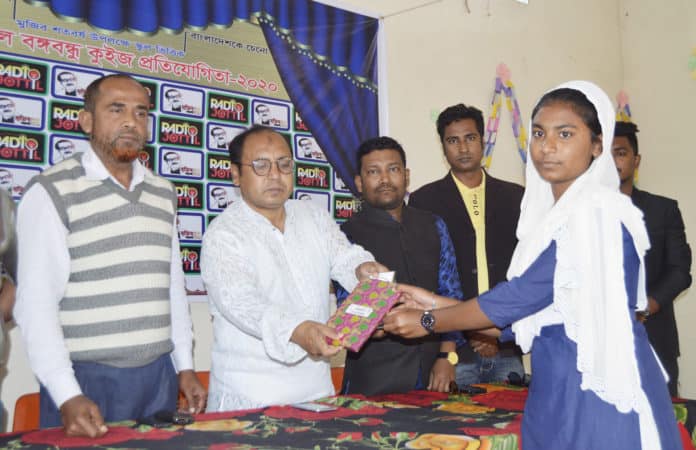 এস.এম সুমনঃ বঙ্গবন্ধু কে জানো, বাংলাদেশ কে চেনো এই শ্লোগান কে সামনের রেখে কুষ্টিয়ায় স্কুল ভিত্তিক রেডিও জট্টিল বঙ্গবন্ধু কুইজ প্রতিযোগিতা ২০২০ এর শুভ উদ্বোধন করা হয়েছে। গতকাল শনিবার বেলা সাড়ে ১১ টার সময় কুষ্টিয়ার আদর্শ মাধ্যমিক বিদ্যালয়ে রেডিও জট্টিল এর আয়োজনে ছয় দিনব্যাপী উক্ত কুইজ প্রতিযোগিতার উদ্বোধন ও আলোচনা সভা এবং পুরষ্কার বিতরনী অনুষ্ঠান অনুষ্ঠিত হয়। প্রধান অতিথি হিসেবে উপস্থিত থেকে ছয় দিনব্যাপী স্কুল ভিত্তিক কুইজ প্রতিযোগিতার উদ্বোধন ও বক্তব্য রাখেন কুষ্টিয়া প্রেসক্লাব কেপিসির সভাপতি ও বিশিষ্ট লেখক মুক্তিযুদ্ধ গবেষক আলহাজ্ব রাশেদুল ইসলাম বিপ্লব। প্রধান অতিথির বক্তব্যে তিনি বলেন বঙ্গবন্ধু মানেই বাংলাদেশ, বঙ্গবন্ধু কে আমাদের মাঝে সঠিক ভাবে ধারন করতে হবে, এদেশ রক্ষা করতে হলে, বঙ্গবন্ধু কে রক্ষা করতে হবে। এদেশের প্রতিটি মানুষের হৃদয়ে বঙ্গবন্ধুর বসবাস, তাই সেদিকে লক্ষ রেখে নতুন প্রজন্মের মধ্যেও ছড়িয়ে দিতে হবে বঙ্গবন্ধু কে, জানাতে হবে সঠিক ইতিহাস। এসময় তিনি আরো বলেন বঙ্গবন্ধুর মধ্যে যে স্বপ্ন ছিলো, যে লক্ষ তার সবই বাস্তবায়ন এর আপ্রাণ চেষ্টা করে যাচ্ছেন তারই কণ্যা জননেত্রী শেখ হাসিনা, সে জন্য তাকেও সার্বিক সহযোগিতা করা আমার আপনার সকলের দায়িত্ব। প্রধান অতিথির বক্তব্যে রাশেদুল ইসলাম বিপ্লব আরো বলেন বঙ্গবন্ধু কে নতুন প্রজন্মের মাঝে ছড়িয়ে দিতে রেডিও জট্টিলের এই উদ্দ্যেগ অত্যান্ত প্রশংসনীয়, এভাবে প্রতিটি মানুষ যদি তার দায়িত্বের জায়গা থেকে এগিয়ে আসে তাহলে আমরা নতুন প্রজন্মের মাঝে বঙ্গবন্ধু বাংলাদেশ ও মুক্তিযুদ্ধের সঠিক ইতিহাস তুলে ধরতে পারবো। রেডিও জট্টিলের আয়োজনে ছয় দিন ব্যাপী স্কুল ভিত্তিক কুইজ প্রতিযোগিতার প্রথম দিনের আলোচনা সভায় আদর্শ মাধ্যমিক বিদ্যালয়ের প্রধান শিক্ষক শামসুর রহমান এর সভাপতিত্বে ও রেডিও জট্টিলের প্রোগ্রামিং ডিরেক্টর এস এম সুমনের উপস্থাপনায়, বিশেষ অতিথি হিসেবে উপস্থিত ছিলেন বঙ্গবন্ধু শিক্ষা ও গবেষণা পরিষদ কুষ্টিয়া জেলা শাখার সাধারণ সম্পাদক সুনিল কুমার চক্রবর্তী, রেডিও জট্টিল এর সিইও আতিকুজ্জামান ছন্দ, দৈনিক পদ্মা গড়াই পত্রিকার বার্তা সম্পাদক শেখ নাজমুল হোসেন। এসময় কুষ্টিয়া জেলা ছাত্রলীগের সহ সম্পাদক ও প্রত্যয় যুব সংঘের কার্যনির্বাহী সদস্য এস কে সজিব, দৈনিক পদ্মা গড়াই পত্রিকার স্টাফ রিপোর্টার আরিফুজ্জামান, আকিব শাহরিয়ার সৌরভ, তারুণ্য ৭১ এর সভাপতি মীর আতিক আহমেদ, প্রত্যয় যুব সংঘের আল আমিন পাপ্পু, শাহরিয়ার রাব্বি, তরিকুল ইসলাম, নিপু ইসলাম, সাজিদ ইসলাম, আরেফিন ইমরান, রোকন ইসলাম সহ শিক্ষক, সদস্য, ছাত্র ছাত্রী, ও অন্যান্যরা উপস্থিত ছিলেন। বিশেষ অতিথির বক্তব্