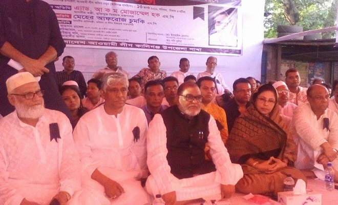 গড়াইনিউজ২৪.কম:: মুক্তিযুদ্ধ বিষয়কমন্ত্রী আ.ক.ম মোজাম্মেল হক বলেছেন, বিএনপি নেত্রী খালেদা জিয়া চক্রান্ত করছে কিভাবে বাংলাদেশকে জঙ্গি রাষ্ট্র বানানো যায়। আর এ কারণে তারা দেশকে অকার্যকর রাষ্ট্রে পরিনত করতে চায়। শনিবার বিকেলে গাজীপুরের কালীগঞ্জ উপজেলা আওয়ামী লীগ আয়োজিত দলীয় কার্যালয় প্রাঙ্গণে সদ্য প্রয়াত উপজেলা আওয়ামী লীগের সভাপতি শাহাবউদ্দিন আহমেদ স্মরণে শোক সভায় প্রধান অতিথির বক্তব্যে এ কথা বলেন। বিশেষ অতিথির বক্তব্যে মহিলা ও শিশুবিষয়ক প্রতিমন্ত্রী মেহের আফরোজ চুমকি বলেন, ১৯৭৫ সালের ১৫ আগস্ট জাতীর পিতা বঙ্গবন্ধু শেখ মুজিবুর রহমানকে সপরিবারে হত্যা করেছে। পরবর্তীতে জিয়াউর রহমান ও তার দল ক্ষমতায় এসে খুনিদের বাঁচাতে ইন্ডেমনিটি অধ্যাদেশ জারি করে। এই কালো আইনই সেদিন পরিস্কার বুঝিয়ে দিয়েছিল- বঙ্গবন্ধুকে হত্যা করে কারা এদেশে অবৈধভাবে ক্ষমতায় থেকে সুবিধা ভোগ করেছে। উপজেলা আওয়ামী লীগের সহ-সভাপতি ইসমাইল হোসেনের সভাপতিত্বে ও সাধারণ সম্পাদক মো. আব্দুল গনি ভূঁইয়ার পরিচালনায় শোক সভায় আরো বক্তব্য রাখেন- আওয়ামী লীগের কেন্দ্রীয় কমিটির সদস্য মো. আখতারউজ্জামান, গাজীপুর জেলা আওয়ামী লীগের সাধারণ সম্পাদক এ্যাডভোকেট আজমত উল্লাহ খান, যুবলীগ কেন্দ্রীয় কমিটির সদস্য অধ্যাপক আমজাদ হোসেন, তাঁতী লীগ কেন্দ্রীয় কমিটির যুগ্ম আহ্বায়ক খগেন্দ্র চন্দ্র দেবনাথ, কালীগঞ্জ উপজেলা পরিষদের চেয়ারম্যান মো. মোয়াজ্জেম হোসেন পলাশ, সাবেক উপজেলা চেয়ারম্যান বীর মুক্তিযোদ্ধা এসএম নজরুল ইসলাম, জেলা আওয়ামী লীগের সাংগঠনিক সম্পাদক আশরাফী মেহেদী হাসান, উপজেলা আওয়ামী লীগের সহ-সভাপতি পরিমল চন্দ্র ঘোষ, যুগ্ম সম্পাদক এবিএম তারিকুল ইসলাম, সদস্য মাজেদুল ইসলাম সেলিম, কালীগঞ্জ পৌর আওয়ামী লীগ সভাপতি আহমেদুল কবির, সাধারণ সম্পাদক শাহআলম দেওয়ান প্রমুখ।