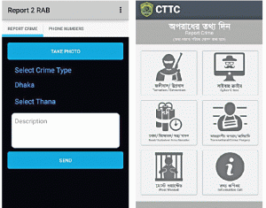 গড়াইনিউজ২৪: অপরাধমূলক কর্মকাণ্ডের তথ্য আইনশৃঙ্খলা রক্ষাকারী বাহিনীর কাছে সরাসরি জানাতে দুটি স্মার্টফোন অ্যাপ্লিকেশন (অ্যাপ) প্রকাশ করেছে র্যাপিড অ্যাকশন ব্যাটালিয়ন (র্যাব) এবং ঢাকা মেট্রোপলিটন পুলিশের কাউন্টার টেররিজম অ্যান্ড ট্রান্সন্যাশনাল ক্রাইম (সিটিটিসি) বিভাগ।