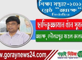 কুষ্টিয়া অফিস, গড়াইনিউজ২৪.কম:: জাতীয় শিক্ষা সপ্তাহ -২০২২ এ দৌলতপুর উপজেলায় শ্রেষ্ঠ “অধ্যক্ষ” নির্বাচিত হয়েছেন দৌলতপুর মডেল কলেজের অধ্যক্ষ ছাদিকুজ্জামান খাঁন সুমন।